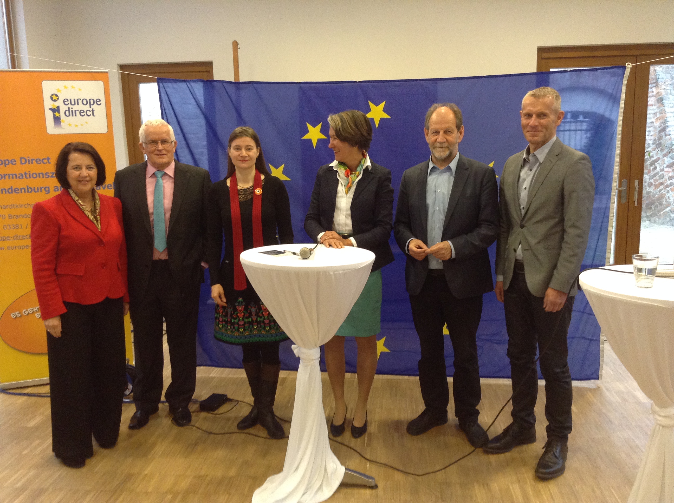EU Kandidatendebatte in Brandenburg Published 19. April 2014 at 2592 × 1936 in EU Kandidatendebatte in Brandenburg v.l.n.r.: Susanne Melior (SPD), Alfred Eichhorn (Moderator), Anke Domscheit-Berg (Piraten), Christiane Gaethgens (FDP), Michael Cramer (Grüne), Helmut Scholz (Linke)