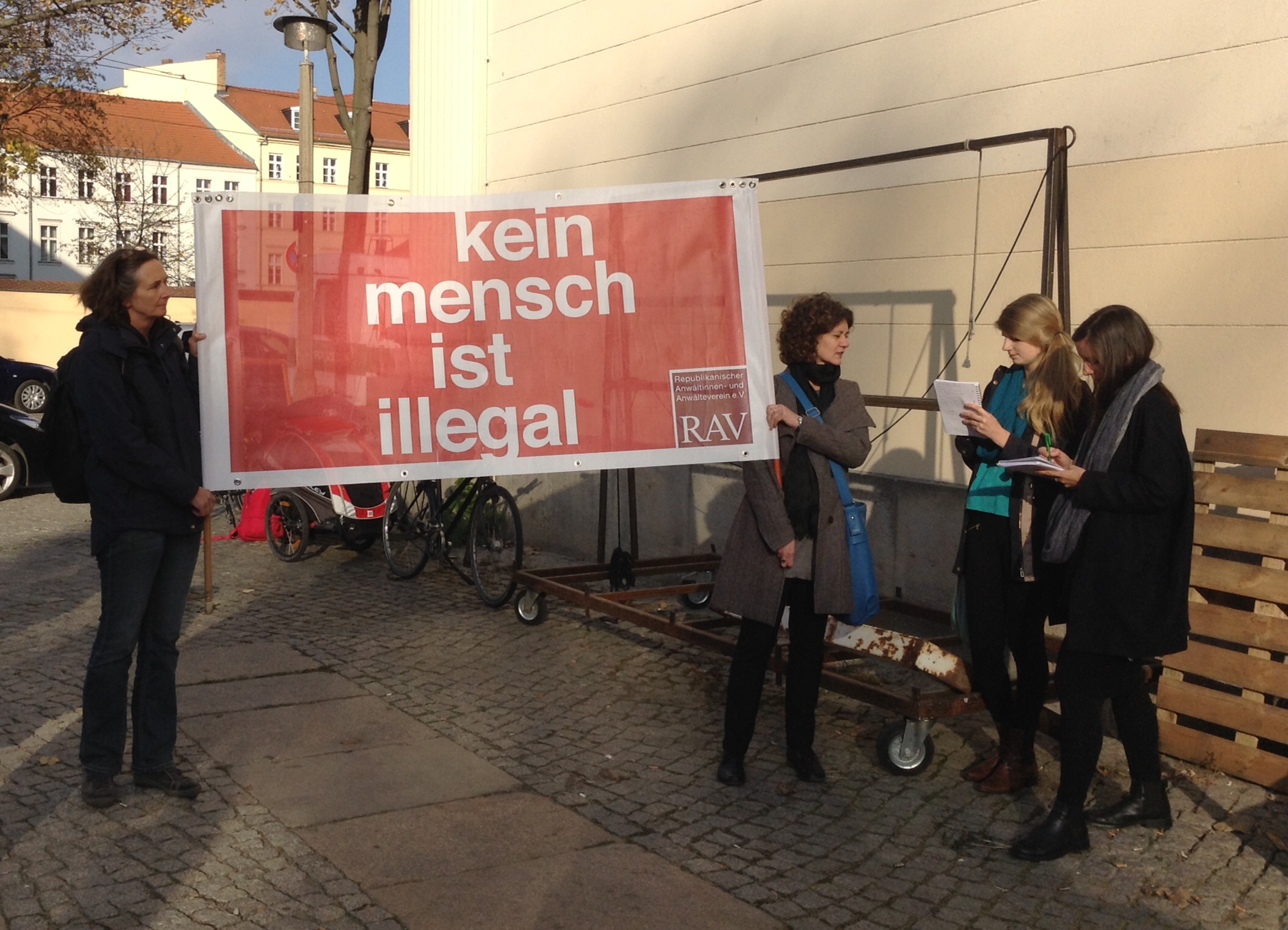 Kein Mensch ist illegal… Aufnahme vom Start zum Ersten Europäischen Mauerfall am Gorki-Theater Berlin, 7.11.2014