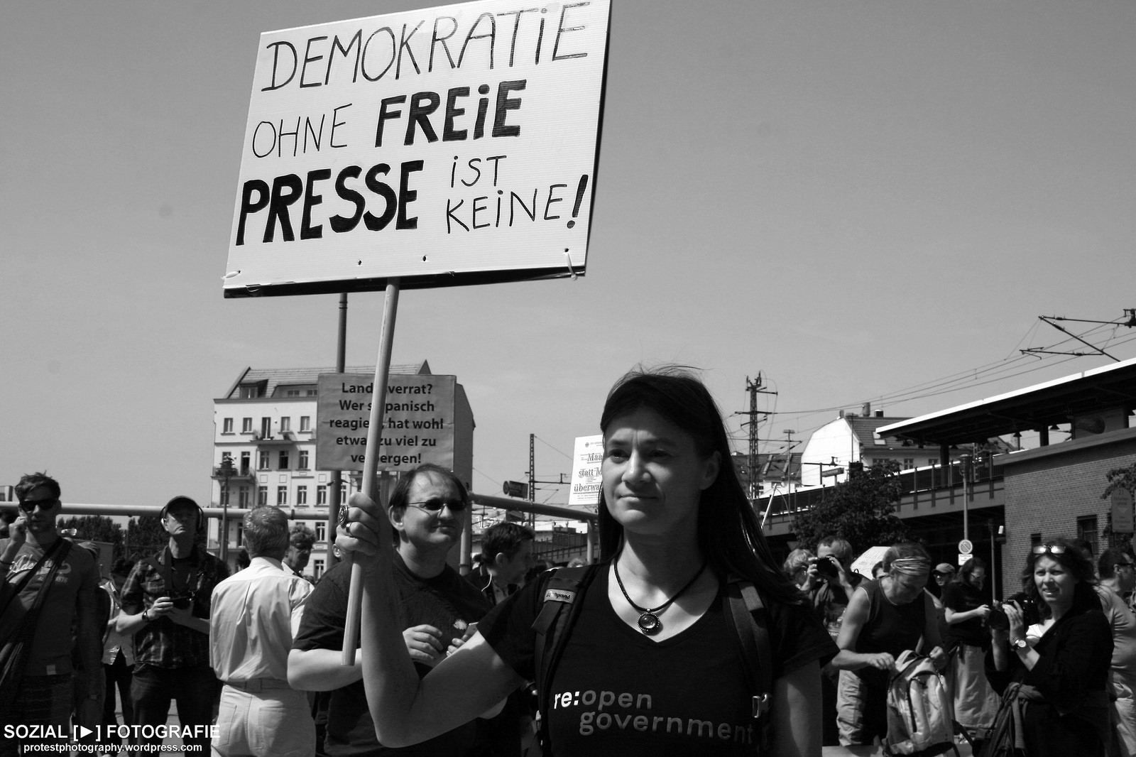 Demokratie ohne freie Presse ist keine! Published 8. August 2015 at 1600 × 1066 in Demokratie ohne freie Presse ist keine! Auf der „Landesverrat“ Demo am 01.08.2015 in Berlin. Bildrechte: Sozialfotografie StR https://www.flickr.com/photos/sozialfotografie